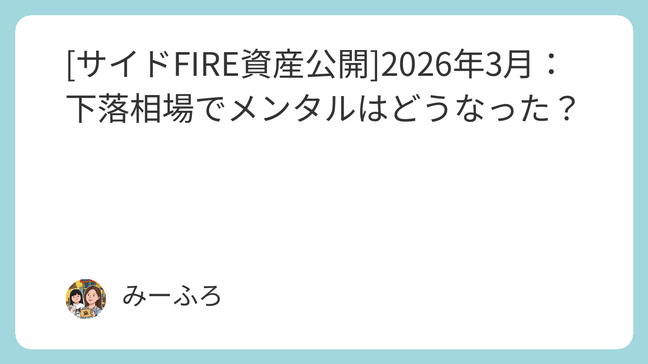 今回は、2026年3月末時点での総資産状況を公開しました。